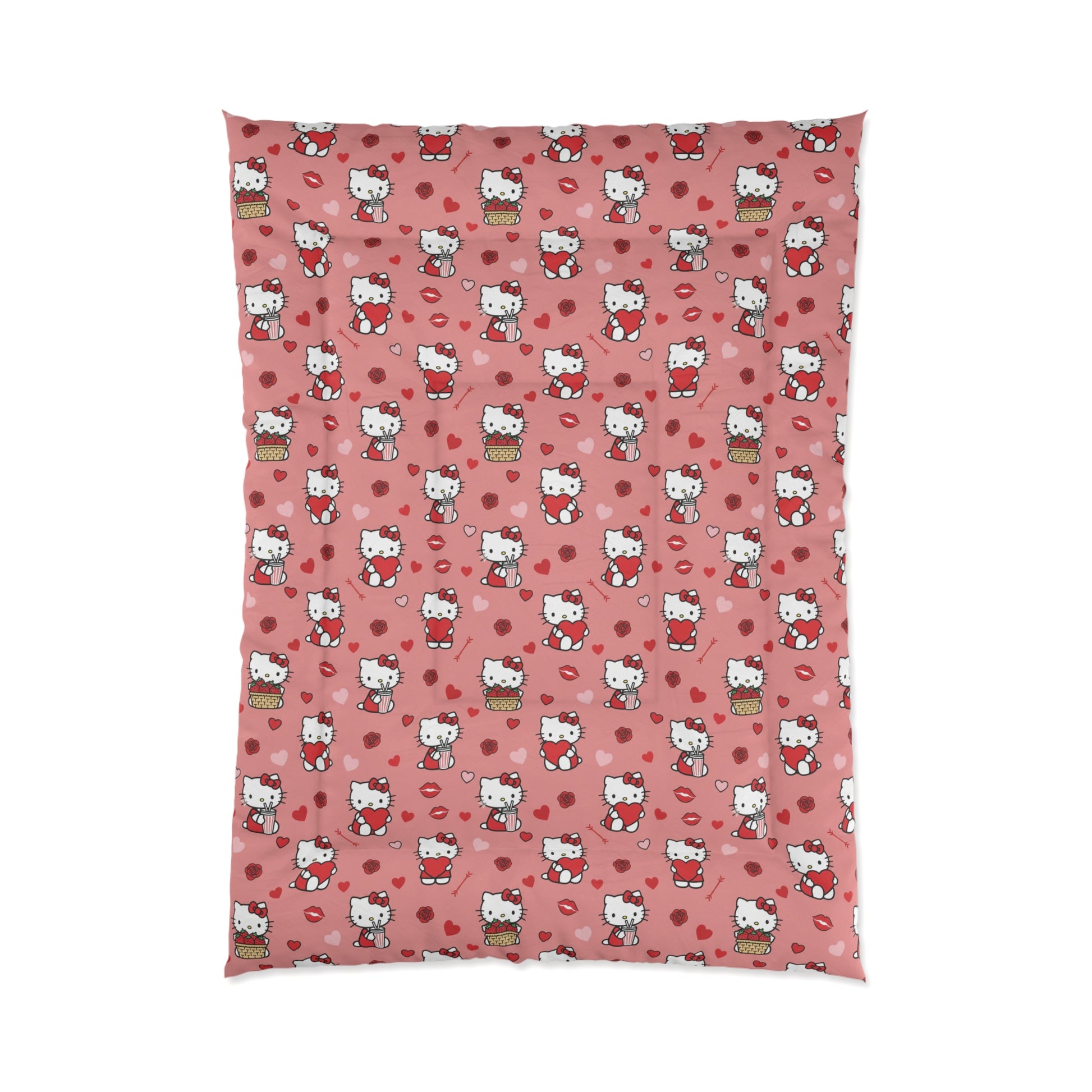 Hello Kitty Hearts Comforter — Cute Pink Cat Pattern Bedding for Kids & Teens